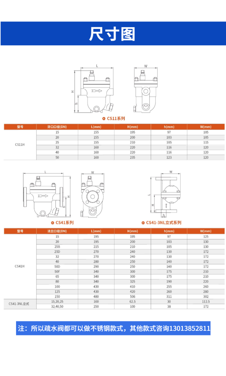 不銹鋼疏水閥,可制作WCB/304/316的材質(zhì)的閥門。自由浮球式不銹鋼疏水閥能快速排水,閥體加厚設(shè)計壽命長。廣泛使用在石油、化工、輕紡、印染、制藥、造紙、食品,等工礦企業(yè)。咨詢電話13013852811