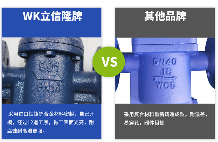 立信隆疏水閥采用進口鈷鉻鎢合金材質密封,自己開模,經過12道工序,做工表面光亮,耐腐蝕耐高溫更強。